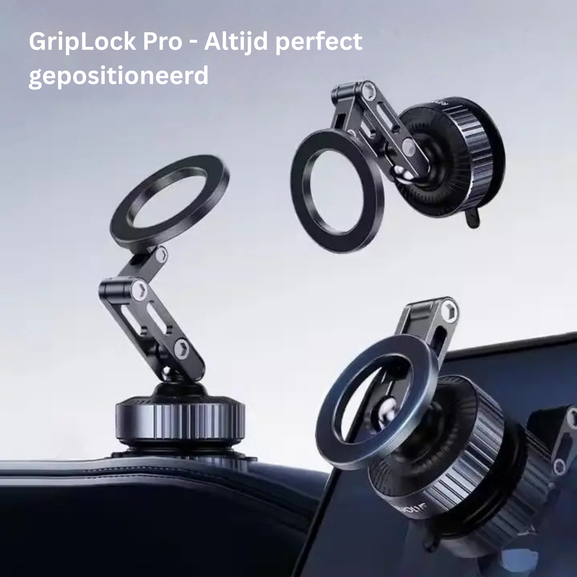 Met GripLock Pro zet je je telefoon razendsnel rotsvast vast. De combinatie van neodymiummagneten en vacuümzuiging houdt hem stevig op zijn plek, terwijl de 360° rotatie zorgt voor perfect zicht, zelfs bij hobbels en onverwachte manoeuvres.