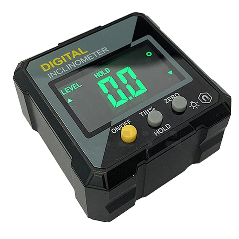 TrueTilt is een digitale inclinometer en compact meetinstrument dat gemaakt is voor precisie. Met een duidelijk LCD-scherm en een magnetische basis hecht het stevig aan oppervlakken en geeft het direct nauwkeurige hoek- en hellingsmetingen weer. In tegenstelling tot traditionele gradenbogen of waterpassen kun je met TrueTilt eenvoudig schakelen tussen relatieve en absolute metingen, gegevens vasthouden met één druk op de knop en profiteren van automatische uitschakeling om energie te besparen.